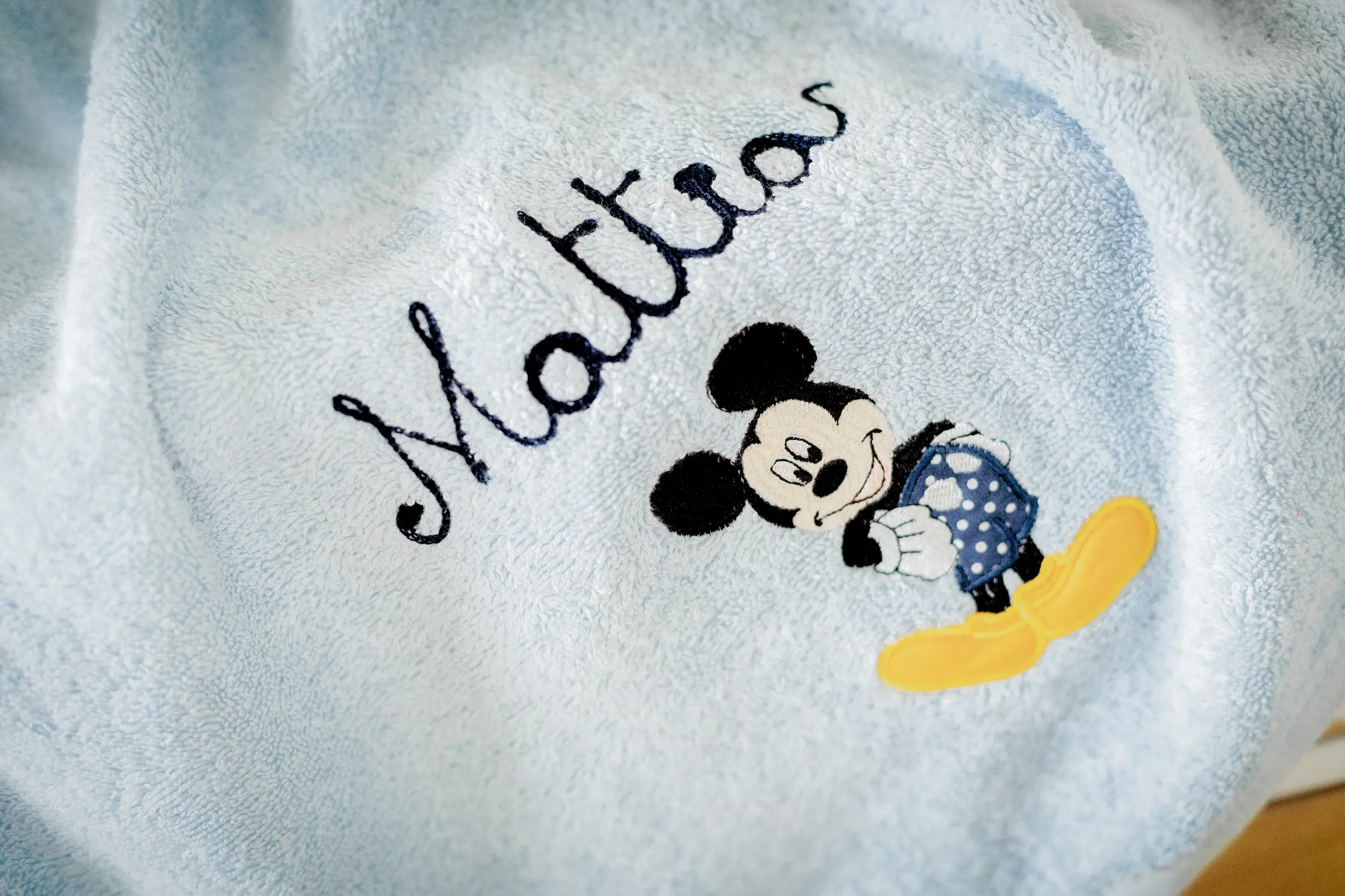Offrez à votre enfant un véritable cocon de douceur après le bain ou la piscine avec notre Duo de Linges de Bain personnalisables. Confectionnés en coton 100% certifié OEKO-TEX®, doux et absorbants, nos linges allient confort, qualité et praticité. Chaque pièce est brodée à la main en Italie, avec le design de votre choix (animaux, personnages, Mickey, Licorne, etc.) et le prénom de l’enfant, pour créer un ensemble unique et plein de tendresse.